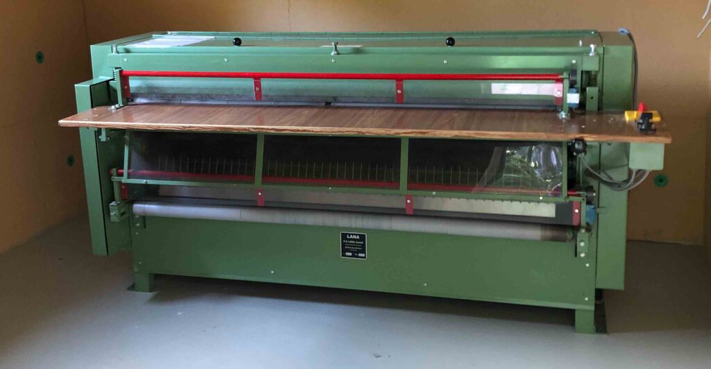 Beim Aufrauen selbst kommen spezielle Rauaschinen zum Einsatz, die mit sogenannten Karden arbeiten. Früher wurden dafür überwiegend Distelkarden verwendet: natürliche, getrocknete Fruchtstände der Distel, die sich besonders schonend für empfindliche, handgewebte Stoffe eigneten. Heute werden meist moderne Nylonkarden eingesetzt, die eine gleichmäßige und kontrollierbare Bearbeitung ermöglichen. Beide Varianten greifen die Oberfläche des Gewebes vorsichtig an und ziehen einzelne Faserenden heraus, ohne die Struktur zu beschädigen. Besonders wichtig ist dabei eine gleichmäßige Bearbeitung, damit eine homogene, weiche Oberfläche entsteht.